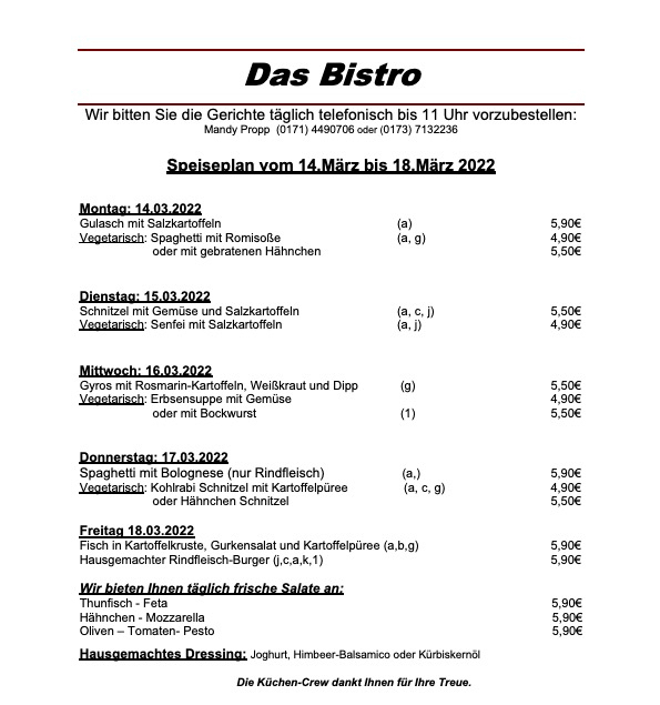 Hier der komplette Speiseplan für diese Woche: