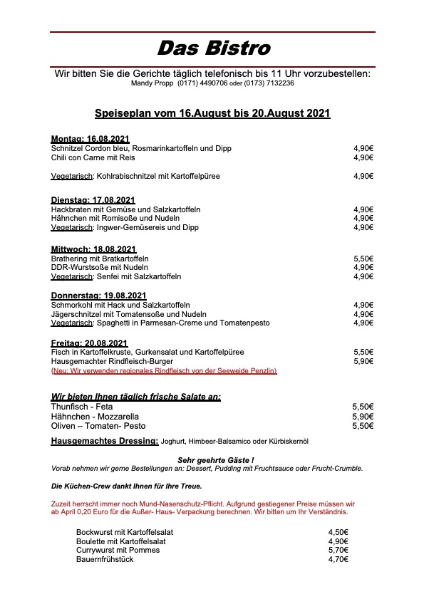 Hier der komplette Speiseplan für diese Woche: