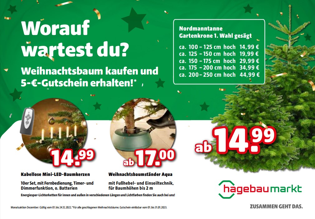So langsam wird’s Zeit, sich um die Vorbereitungen für das Weihnachtsfest zu kümmern. Neben Backen, Braten und Basteln müssen Tannenbäume besorgt und Zubehör überprüft und vielleicht ersetzt werden.