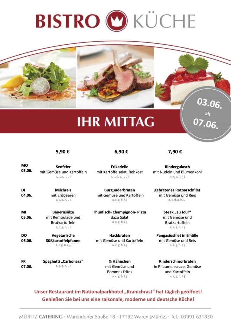 ᵂᴱᴿᴮᵁᴺᴳ | Der aktuelle Speiseplan für die Bistro-Küche in Waren