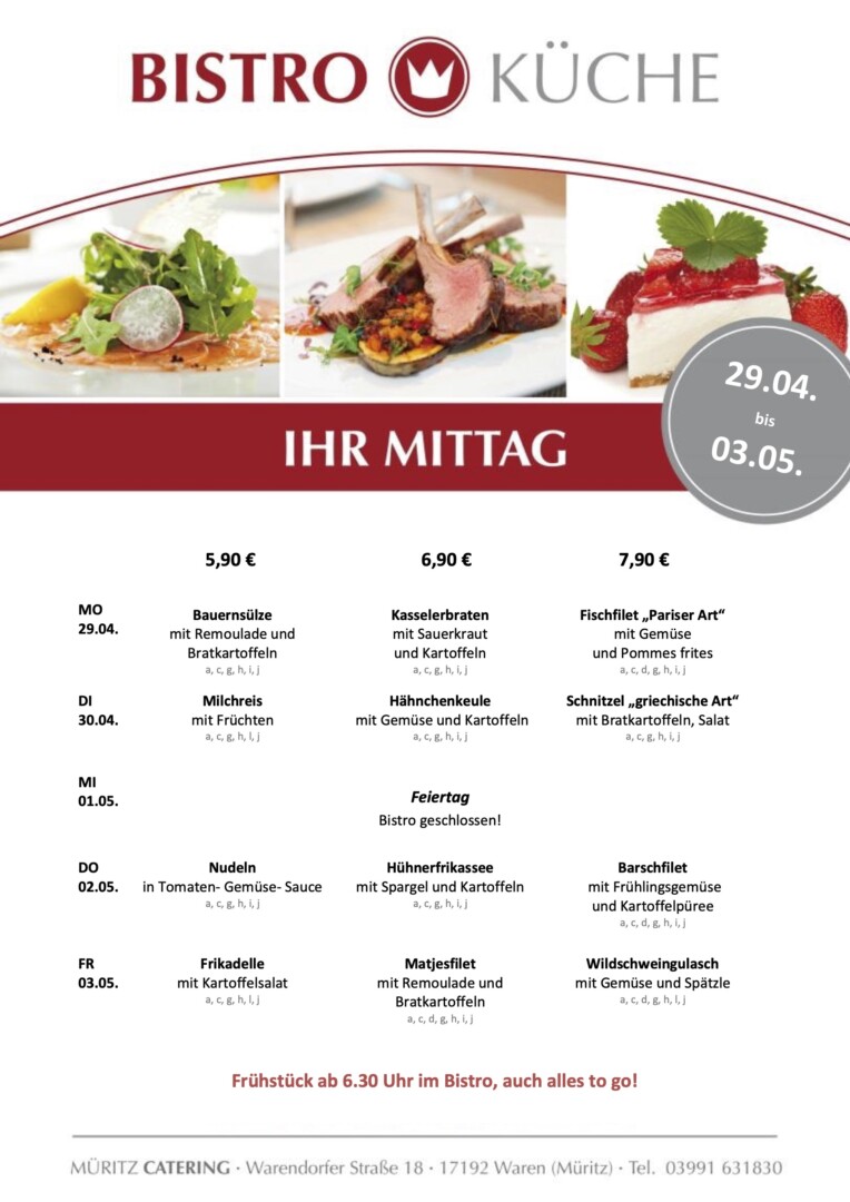 Die letzte Aprilwoche beginnt – auch in der Bistro-Küche von Müritz-Catering im Warener ÜAZ.