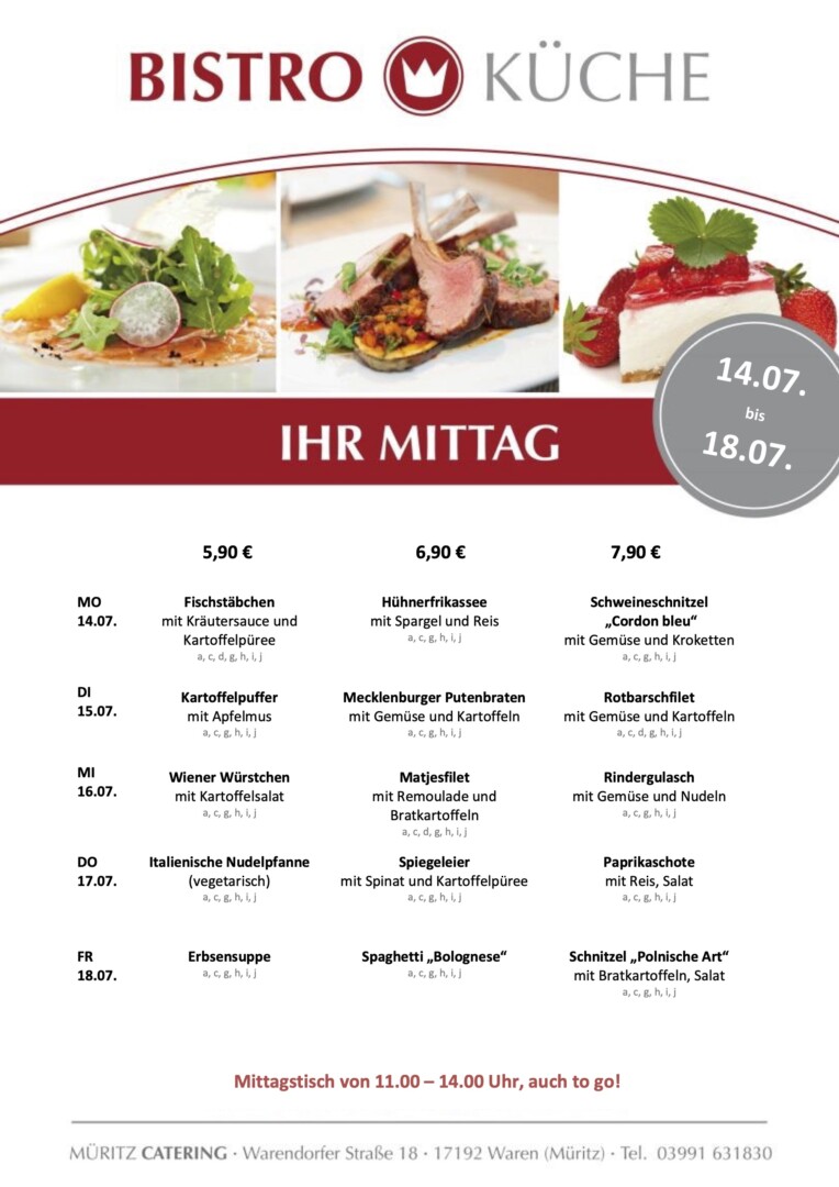 Fischstäbchen mit Kräutersauce, Hühnerfrikassee mit Spargel sowie Schweineschnitzel „Cordon bleu“ sind heute in der Bistro-Küche von Müritz Catering im Warener ÜAZ im Angebot.