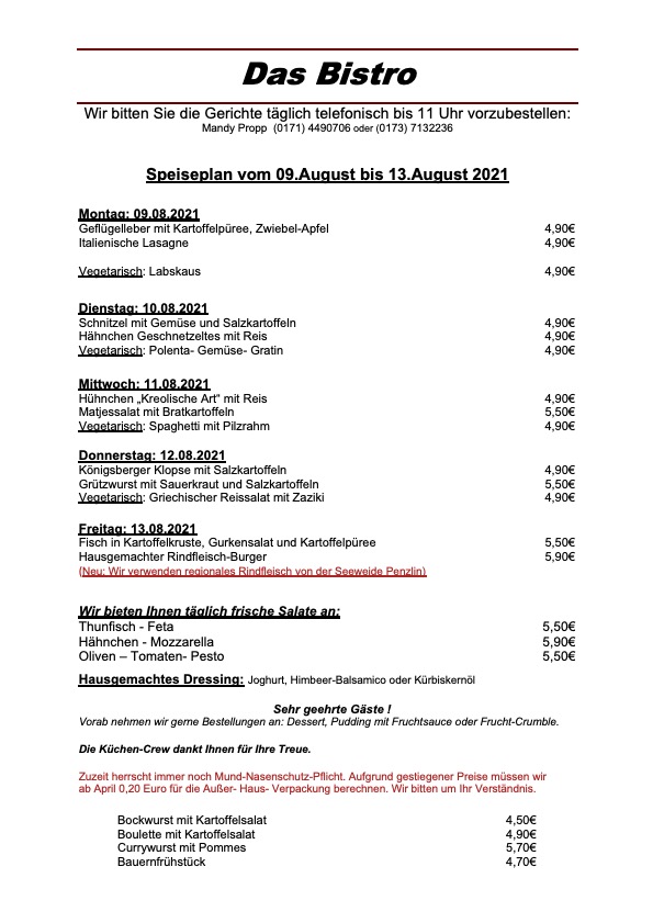Los geht die neue Woche in „Das Bistro“ am Warener Amtsbrink mit Geflügelleber, italienischer Lasagne sowie Labskaus.