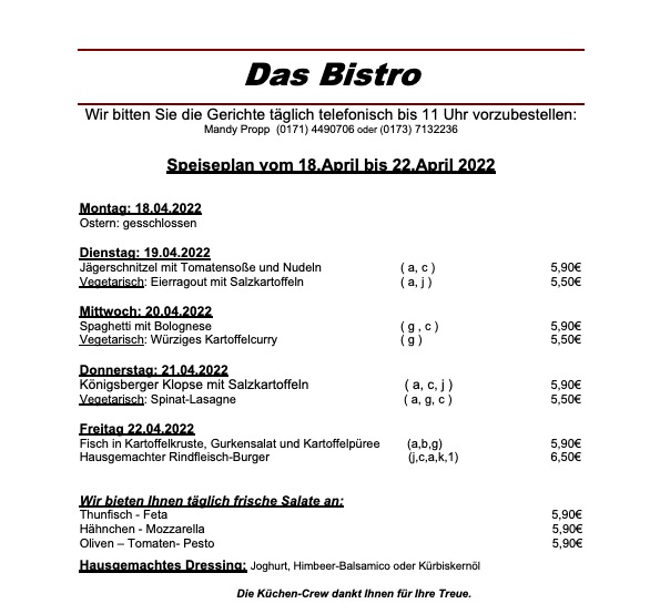 Hier der komplette Speiseplan für diese Woche: