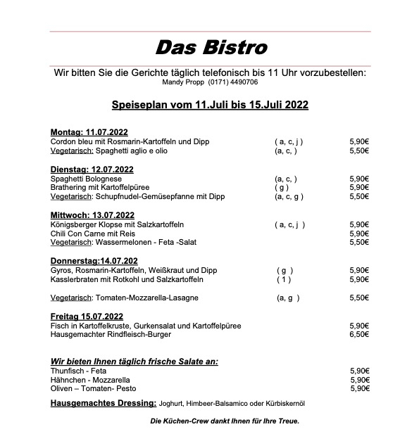 Mit Cordon bleu sowie Spaghetti aglio e olio startet „Das Bistro“ am Warener Amtsbrink in die neue Woche.