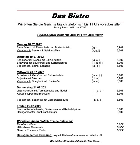 Hier der komplette Speiseplan für diese Woche: