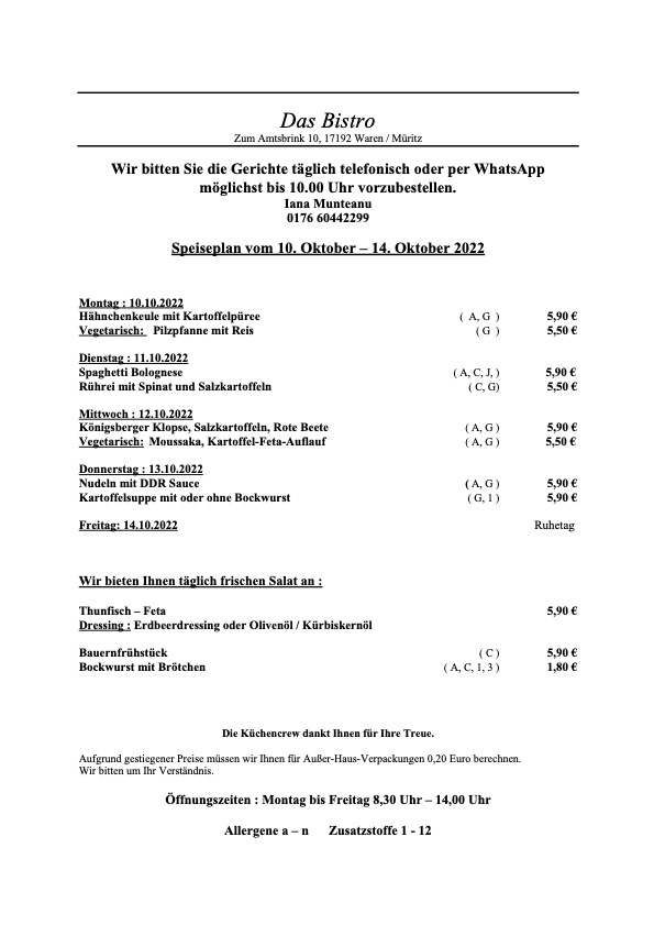 Hier der komplette Speiseplan für diese Woche: