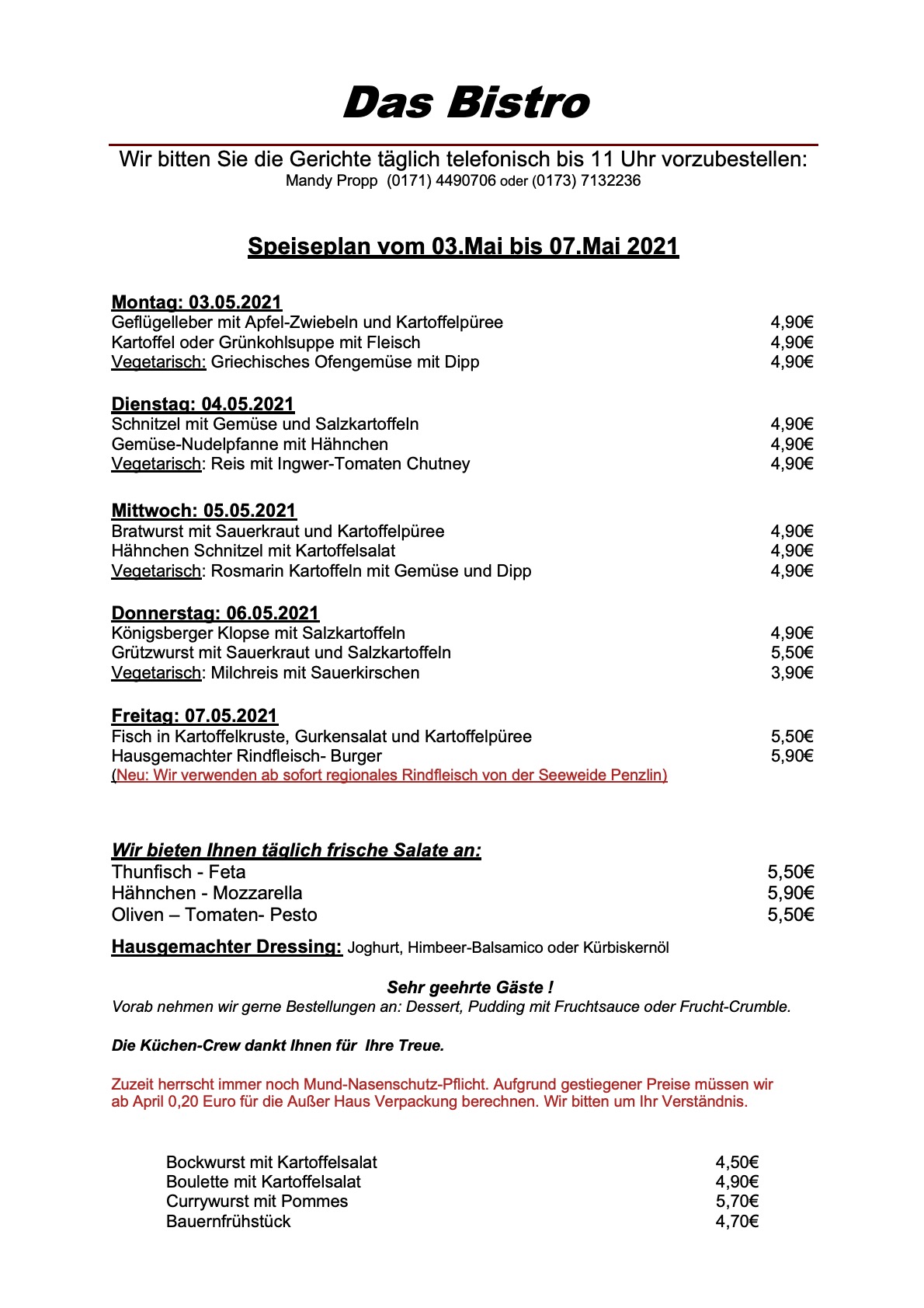 Die erste Mai-Woche beginnt in „Das Bistro“ am Warener Amtsbrink mit Geflügelleber, Grünkohlsuppe und griechischem Ofengemüse.