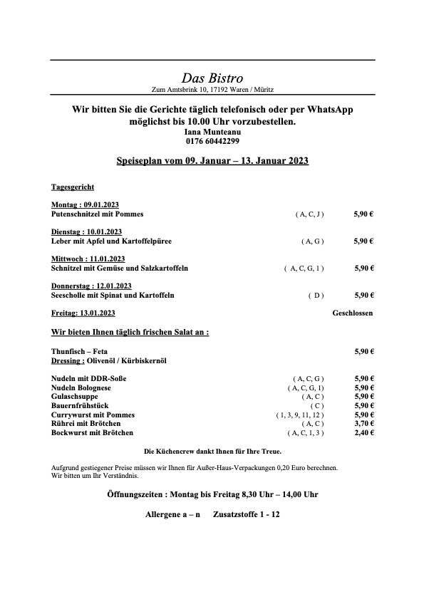 Auch in „Das Bistro“ am Warener Amtsbrink geht’s wieder los.