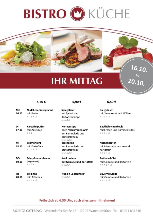 ᵂᴱᴿᴮᵁᴺᴳ | Der aktuelle Speiseplan für die Bistro-Küche in Waren
