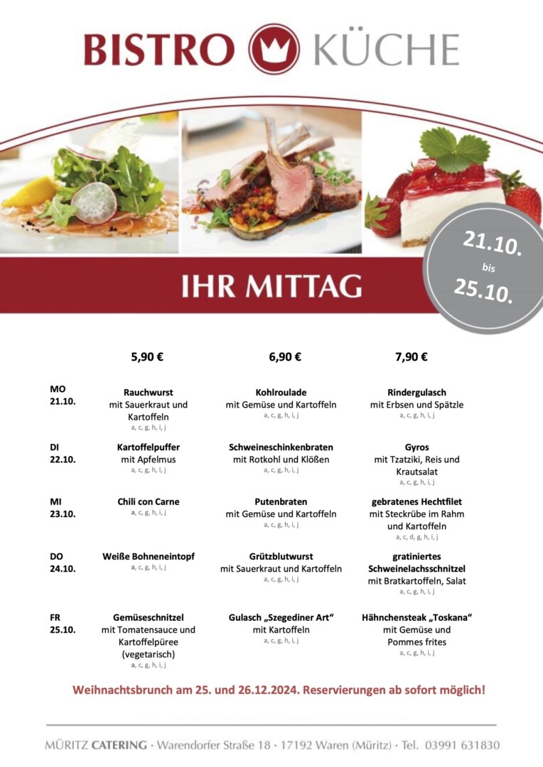 Das sind die heutigen Angebote in der Bistro-Küche von Müritz Catering im Warener ÜAZ.