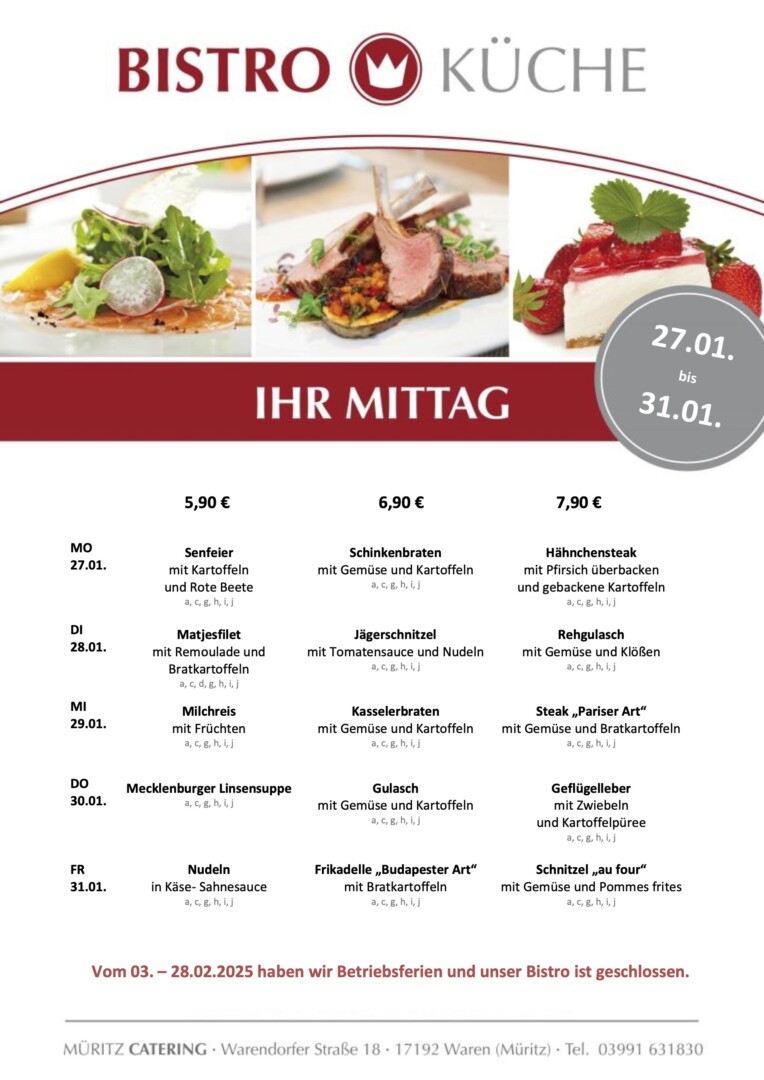 Hier der Speiseplan für diese Woche: