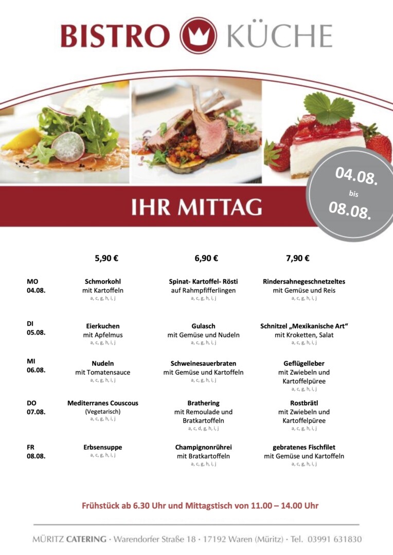 Und der startet in der Bistro-Küche von Müritz Catering im Warener ÜAZ mit Schmorkohl, Kartoffel-Rösti und Spinat sowie Rindersahnegeschnetzeltem.