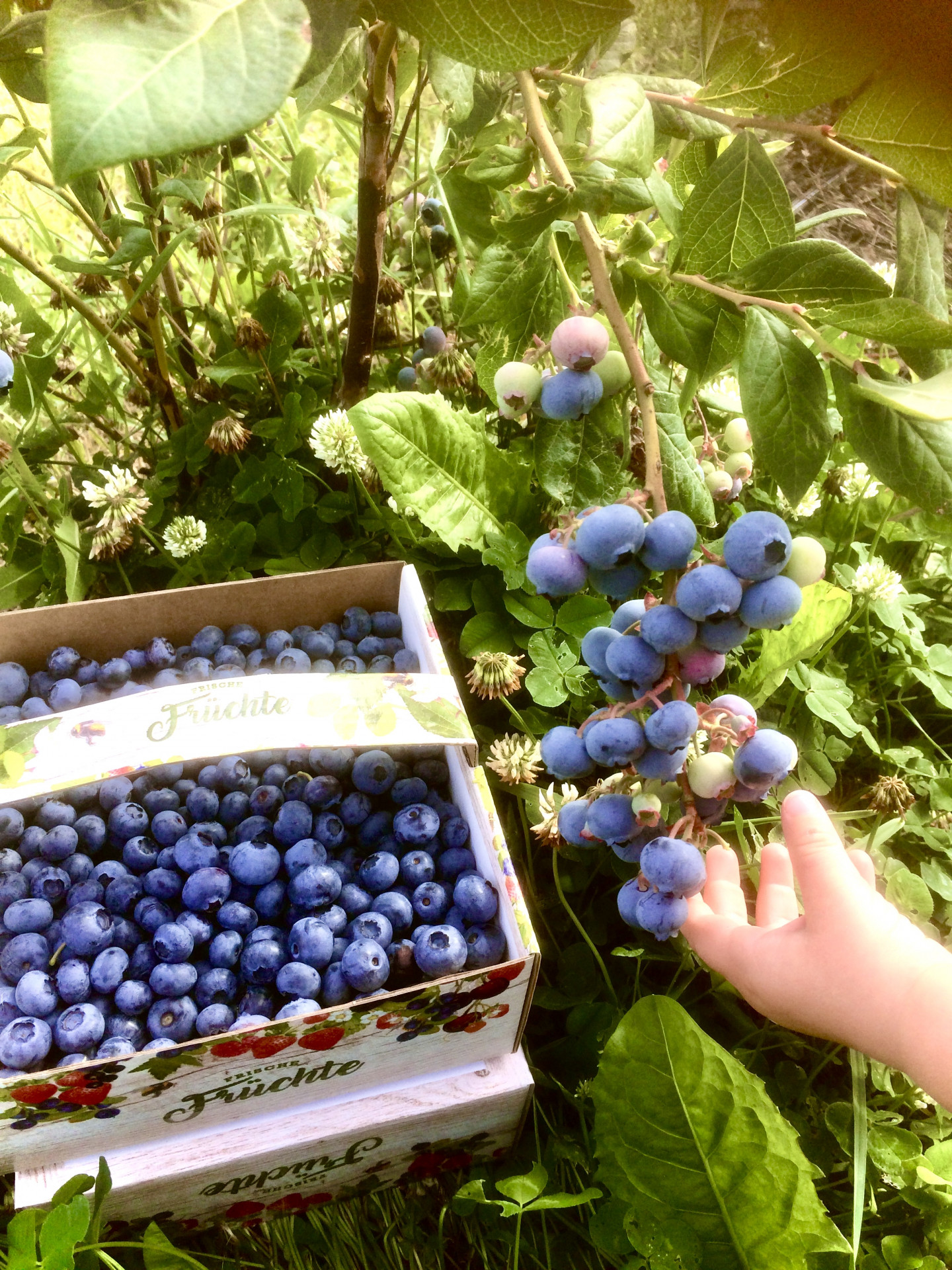 Körbe und Eimer können gerne mitgebracht werden, dass schont die Umwelt. Diese werden dann leer gewogen und das Leergewicht später abgezogen. Für spontane Pflücker gibt es aber auch Körbe direkt am Feld.