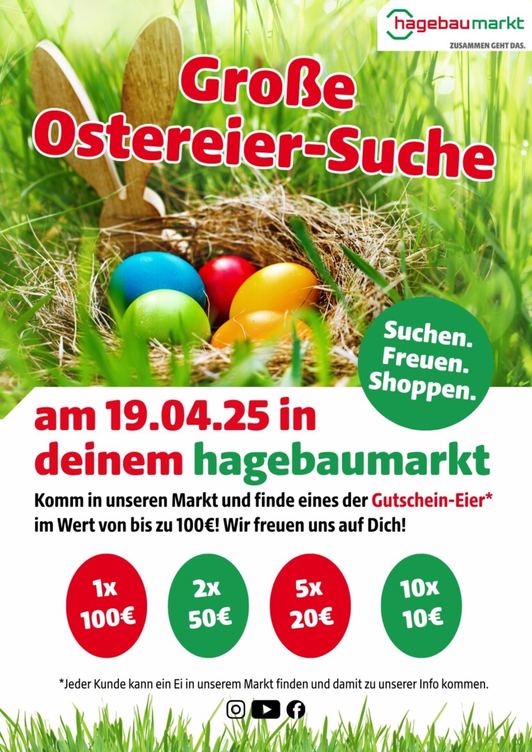 Morgen haben die Geschäfte wieder geöffnet, und der hagebaumarkt Waren lockt passend zum Fest mit einer Ostereier-Aktion: