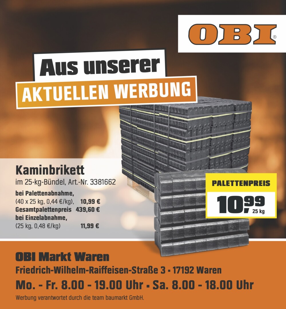 ᵂᴱᴿᴮᵁᴺᴳ | OBI Waren mit besonderem Brikett-Angebot