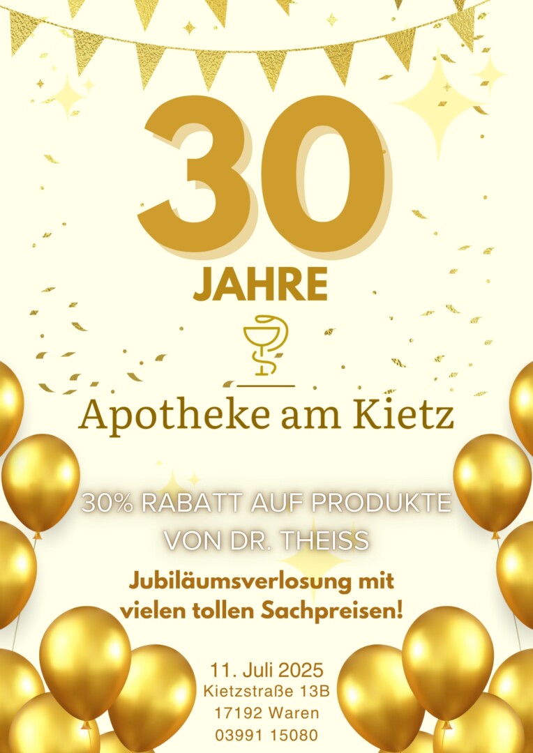 heute ist ein ganz besonderer Tag – ein Tag, an dem wir nicht nur auf eine Zahl blicken, sondern vor allem auf die Geschichten, die Menschen und das Engagement, die sich dahinter verbergen: 30 Jahre Apotheke am Kietz