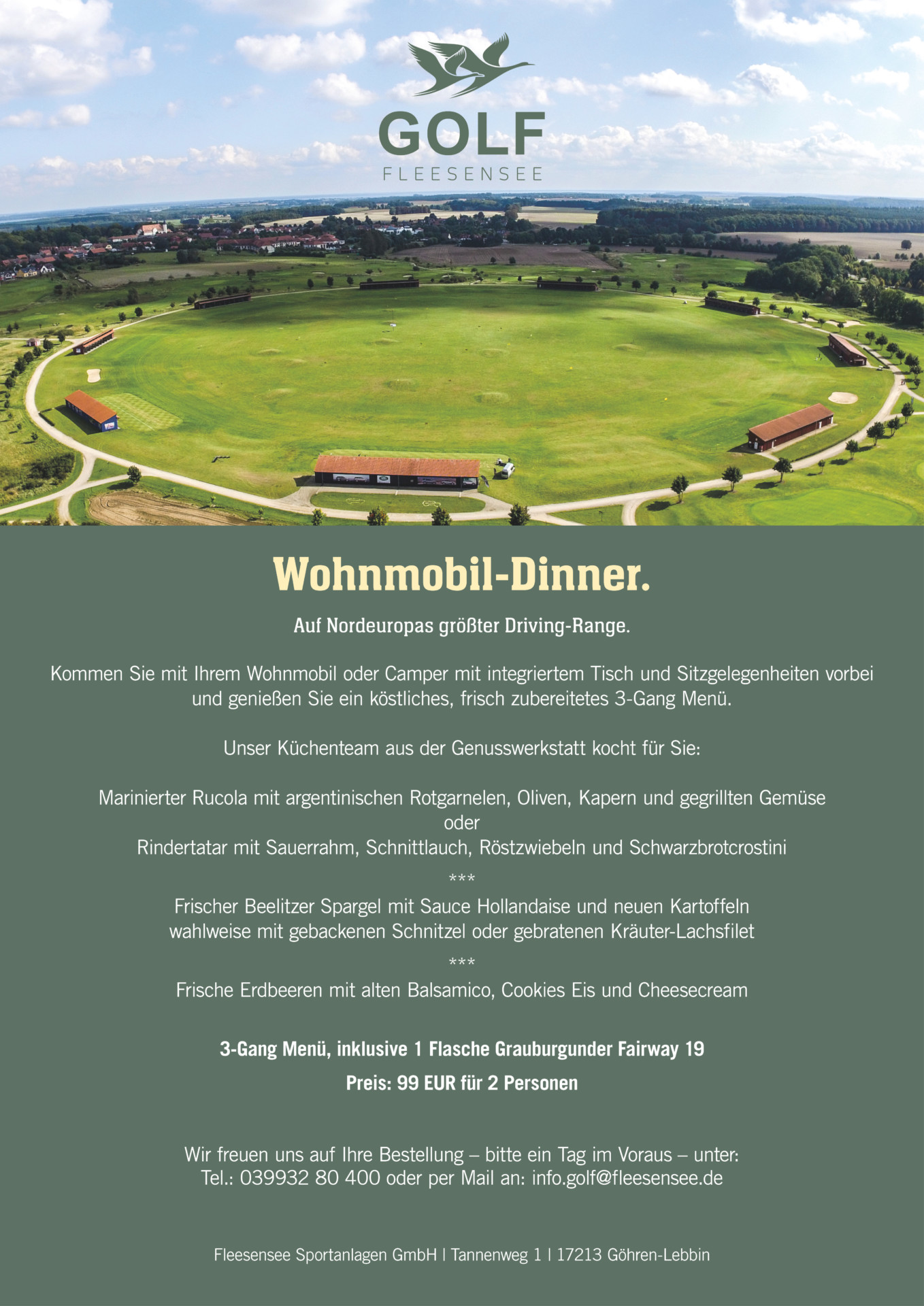 Das Essen wird täglich zwischen 18-20 Uhr serviert. Anmeldungen sind ab sofort unter 039932 80 400 oder an info.golf@fleesensee.de möglich.
