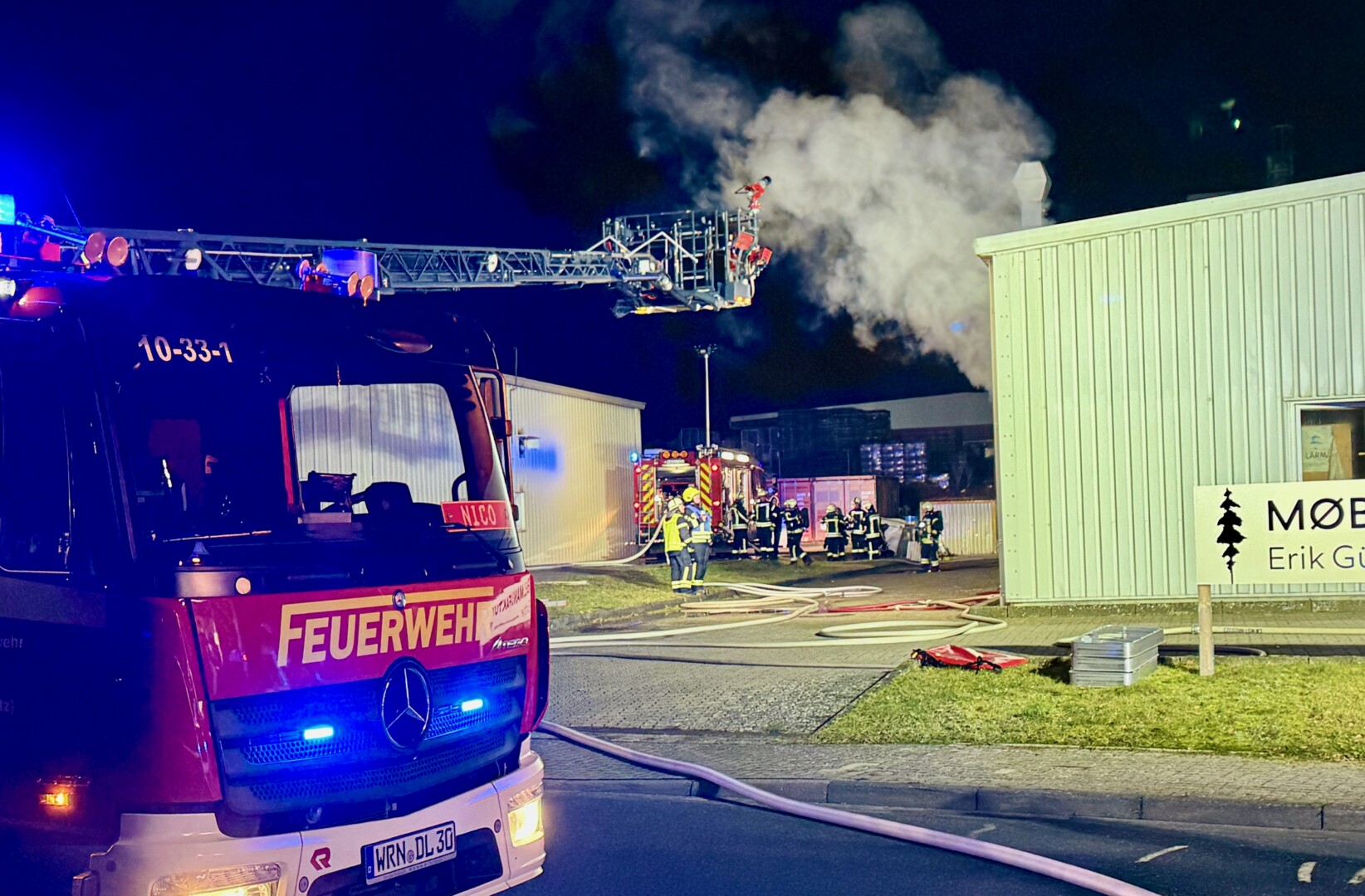 Es hätte alles noch viel schlimmer kommen können: Durch ihren schnellen Einsatz haben die Warener Feuerwehrleute heute früh verhindert, dass die komplette Halle der Möbelmanufaktur in der Siegfried-Marcus-Straße in Waren abbrennt. Dennoch ist laut Abschlussmeldung der Polizei ein Schaden von rund 100 000 Euro entstanden, den das noch junge Unternehmen hart trifft. Zur Brandursache gibt es nach wie vor keine sicheren Erkenntnisse.