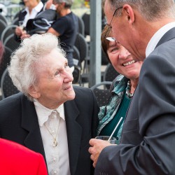 Klinik3Ein weiterer Name ist ganz eng mit der Entwicklung des Warener Krankenhauses verbunden: Lilli Wächter. Sie zeichnete 33 Jahre lang, nämlich von 1949 bis 1982 verantwortlich für die Pflege in der Einrichtung und war bei der heutigen Festveranstaltung Ehrengast. Trotz ihrer inzwischen 90 Jahre verfolgt sie das, was auf dem Weinberg passiert, nach wie vor sehr interessiert.