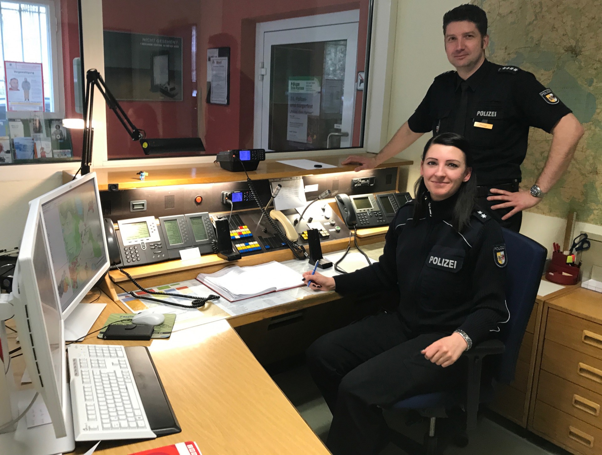Foto unten: Warens neuer Polizeichef und die diensthabende Kollegin Polizeioberkommissarin Cornelia Redelstorff gestern im Warener Revier.