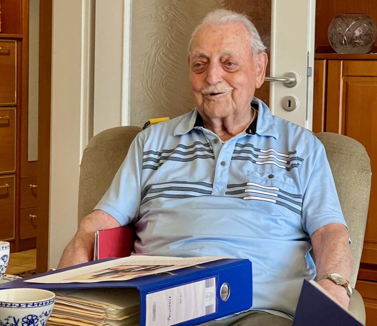 Seinen Führerschein hat Siegfried Piarowski erst mit 97 Jahren abgegeben. Seither fährt er mit seinem „Pony“, wie er seinen elektrischen Rollstuhl liebevoll nennt, zum Einkaufen oder durch die Stadt. Nur etwas schneller könnte das Ding sein, meint er augenzwinkernd.