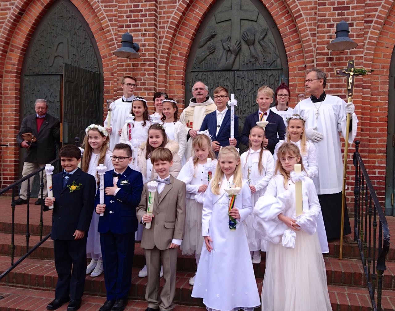 Besonders feierlich wurde es am Sonntag in der katholischen Heilig-Kreuz-Kirche in Waren. 14 Kinder aus der Pfarrei an der Müritz, zu der auch Röbel und Malchow gehören, empfingen im Sonntagsgottesdienst vor rund 200 Besuchern die Erstkommunion.