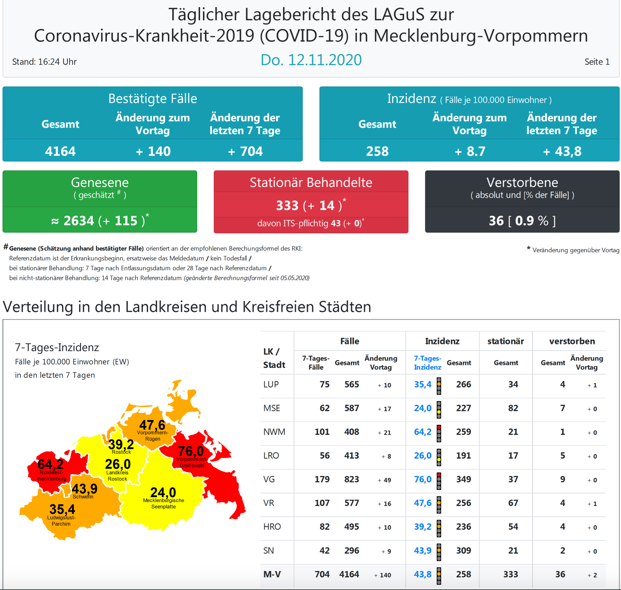 Insgesamt wurden in MV bisher 4164 Infektionen festgestellt.