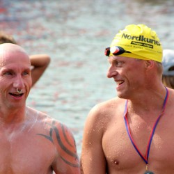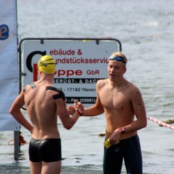 Als erster stieg Per Kleinschmidt aus Mutlangen (Baden-Württemberg) nach 1950 Metern im Warener Volksbad aus dem Wasser. Dem 16-Jährigen dicht auf den Fersen der ein Jahr ältere Lars Klingenberg aus Neubrandenburg. Dritter wurde Paul Norman Repkow, Baujahr 1988, aus Berlin. Und auf Platz vier folgte mit der erst 16-jährigen Tina Pauline Kehlitz aus Wittenberg die erste Frau.