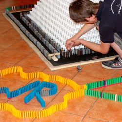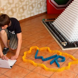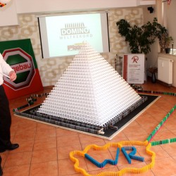 Waren hat einen neuen Weltrekordler! Er heißt Kevin Pöhls, ist 17 Jahre alt und hat eine Rekordpyramide aus Dominosteinen gebaut.