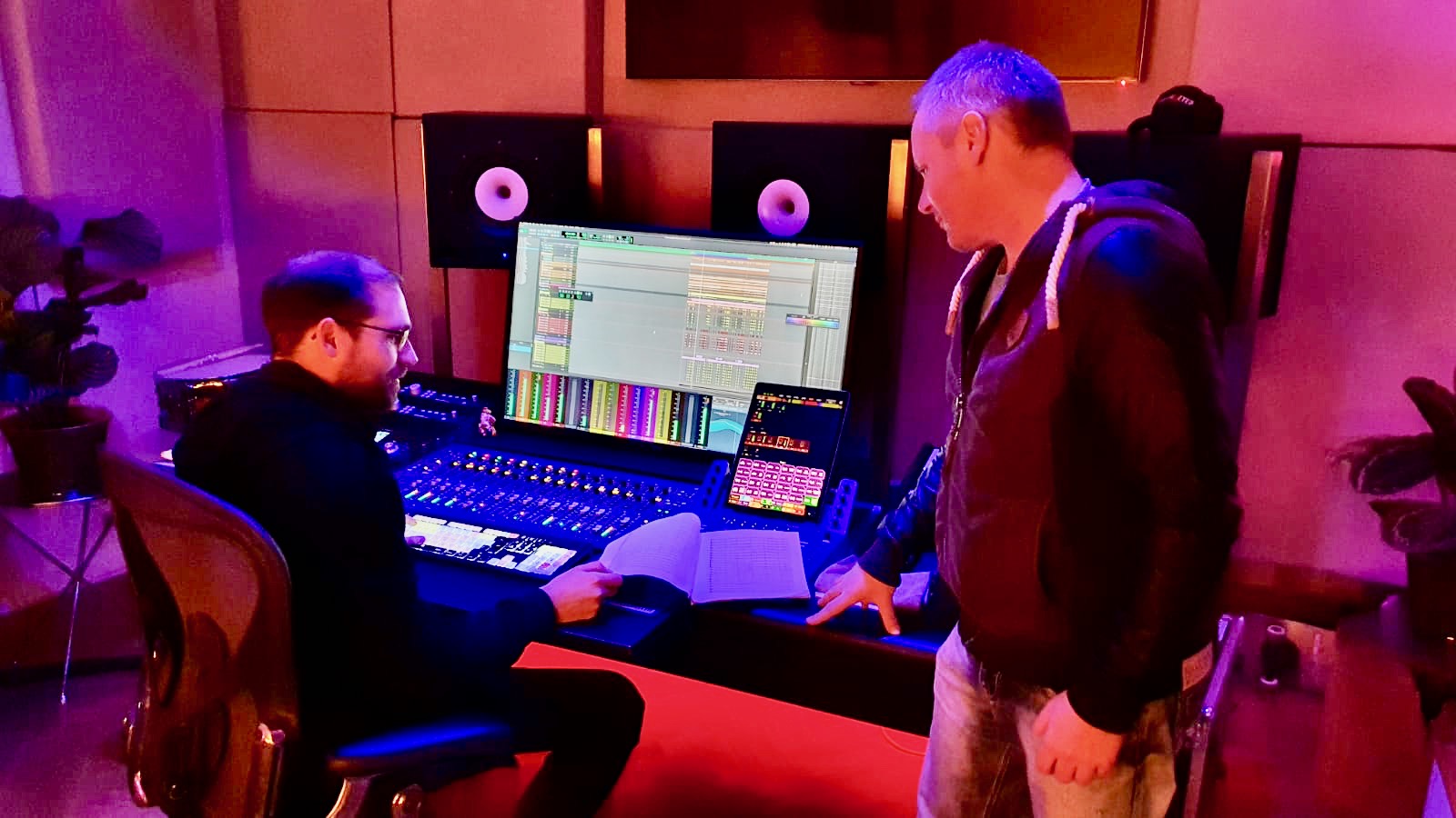 Foto oben: Der Leiter der Big Band des Bundespolizeiorchesters, Jan Diller aus Jabel, bei Absprachen im Tonstudio von Tom Rußbüldt. Der gebürtige Warener betreibt in Berlin ein eigenes Tonstudio.