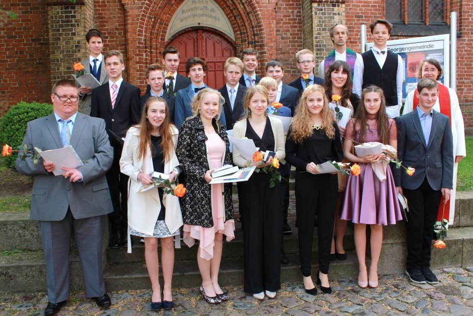 Bis heute legen Menschen ihr Bekenntnis zum christlichen Glauben ab und lassen sich taufen oder konfirmieren. An diesem Pfingstsonntag wurden nach zweijähriger Konfirmandenzeit 18 Jugendliche aus Marien- und Georgengemeinde gemeinsam in der vollen St. Georgenkirche konfirmiert.