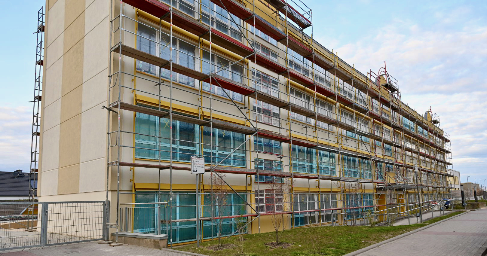 Nanu, was ist denn an der Grundschule auf dem Papenberg los? Das fragen sich derzeit einige Warener, denn am Gebäude steht ein großes Gerüst. Dabei ist die Schule doch erst vor zwei Jahren für rund 1,8 Millionen Euro saniert und erweitert worden. Doch keine Sorge, bei den Arbeiten ist nichts schief gegangen. Wie es aus der Stadtverwaltung heißt, bekommen die letzten Abschnitte der Außenfassade jetzt planmäßig einen neuen Farbanstrich. Gleichzeitig werden die Behänge der Sonnenschutzanlage und die Fenster gereinigt.