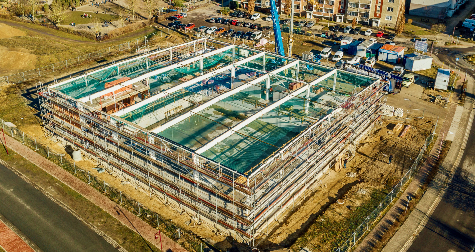 In die Projektgemeinschaft bringen HAB und mele Energietechnik ihre Kompetenzen beim Bau bzw. Ausrüsten von Gebäuden ein. Hallenbauspezialist HAB errichtet das Schwimmhallenkonstrukt, das von mele Energietechnik unter anderem mit Heizungs-, Elektro- und Klimatechnik sowie Wasseraufbereitungsanlage ausgerüstet wird. „Für den Bau in Anklam haben wir ein gemeinsames Konzept entwickelt und darin das 2521-System auf deutsche Anforderungen etwa im Baurecht und Brandschutz angepasst“, erklärt mele-Projektleiter Thomas Klein. „Auf dieser Basis erreichen wir eine enge Abstimmung in allen Bauphasen, was die Fertigstellung beschleunigt und für den Auftraggeber transparent gestaltet.“