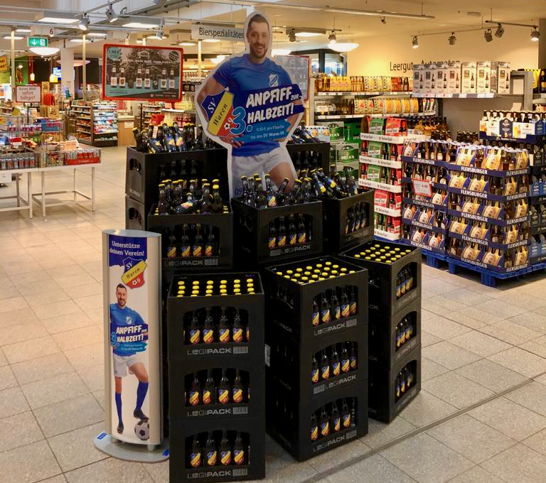 Ein Feierabendbier genießen und dabei einen einheimischen Sportverein unterstützen. Das ist jetzt auch in Waren möglich. Denn der SV Waren 09 ist einer von über 100 Vereinen, die von der Aktion „Vereinsheim“ profitieren. Hinter dieser Aktion steckt hauptsächlich die Kieler Brauerei „lille“, aber auch das Unternehmen „famila“. Und im Warener famila-Markt gibt’s seit wenigen Tagen das „Vereinsheim“-Bier aus Schleswig Holstein. Pro verkaufter Flasche im Warener famila-Markt erhält der SV Waren 09 genau 50 Cent. Die Biersorte ist ganz leicht zu erkennen, denn auf jeder „Buddel“ klebt das Logo des Vereins.