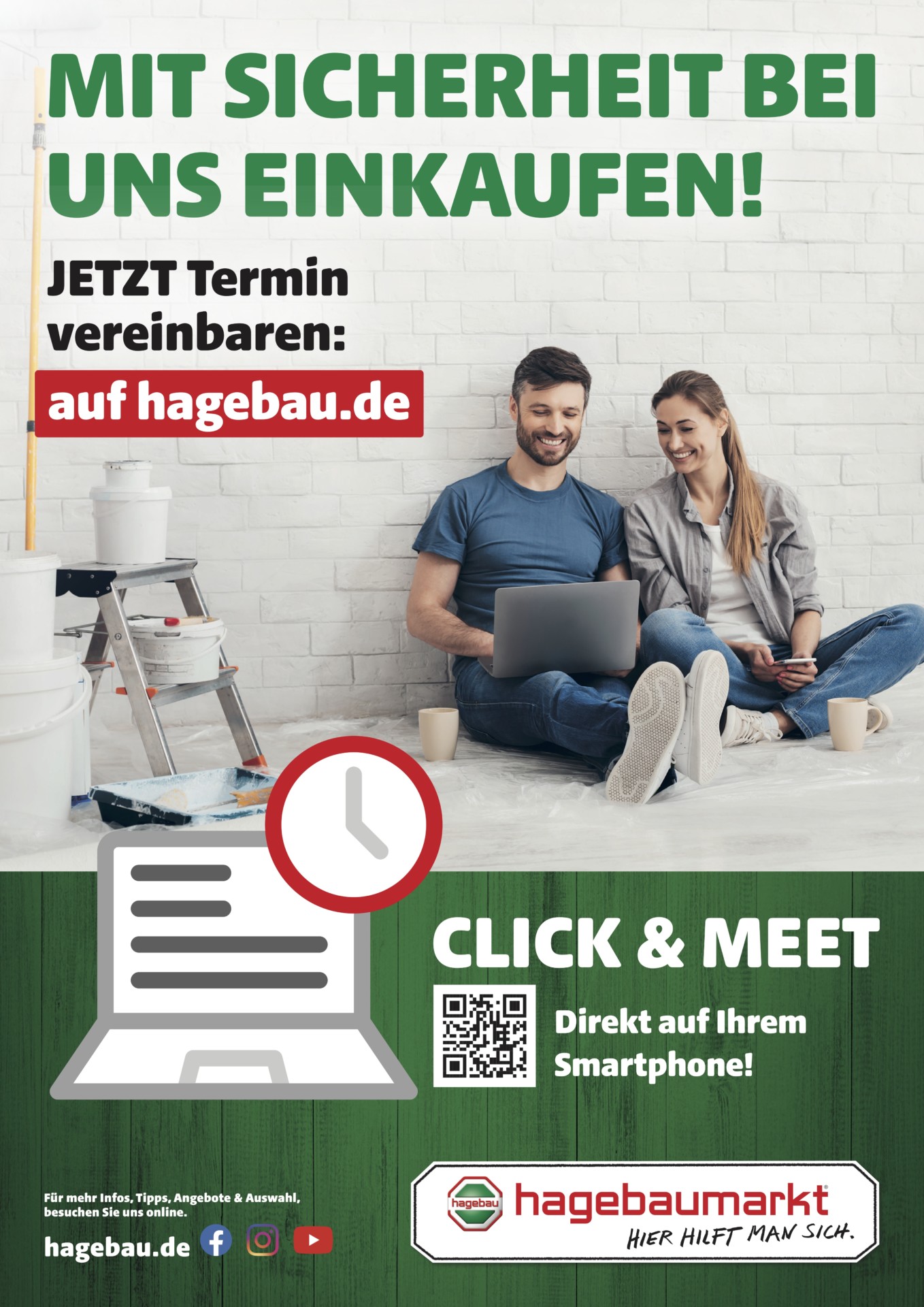 Einkaufen im Baumarktbereich ist nach Terminvergabe (am Markt oder auf hagebau.de) für Kunden mit negativem Test möglich.