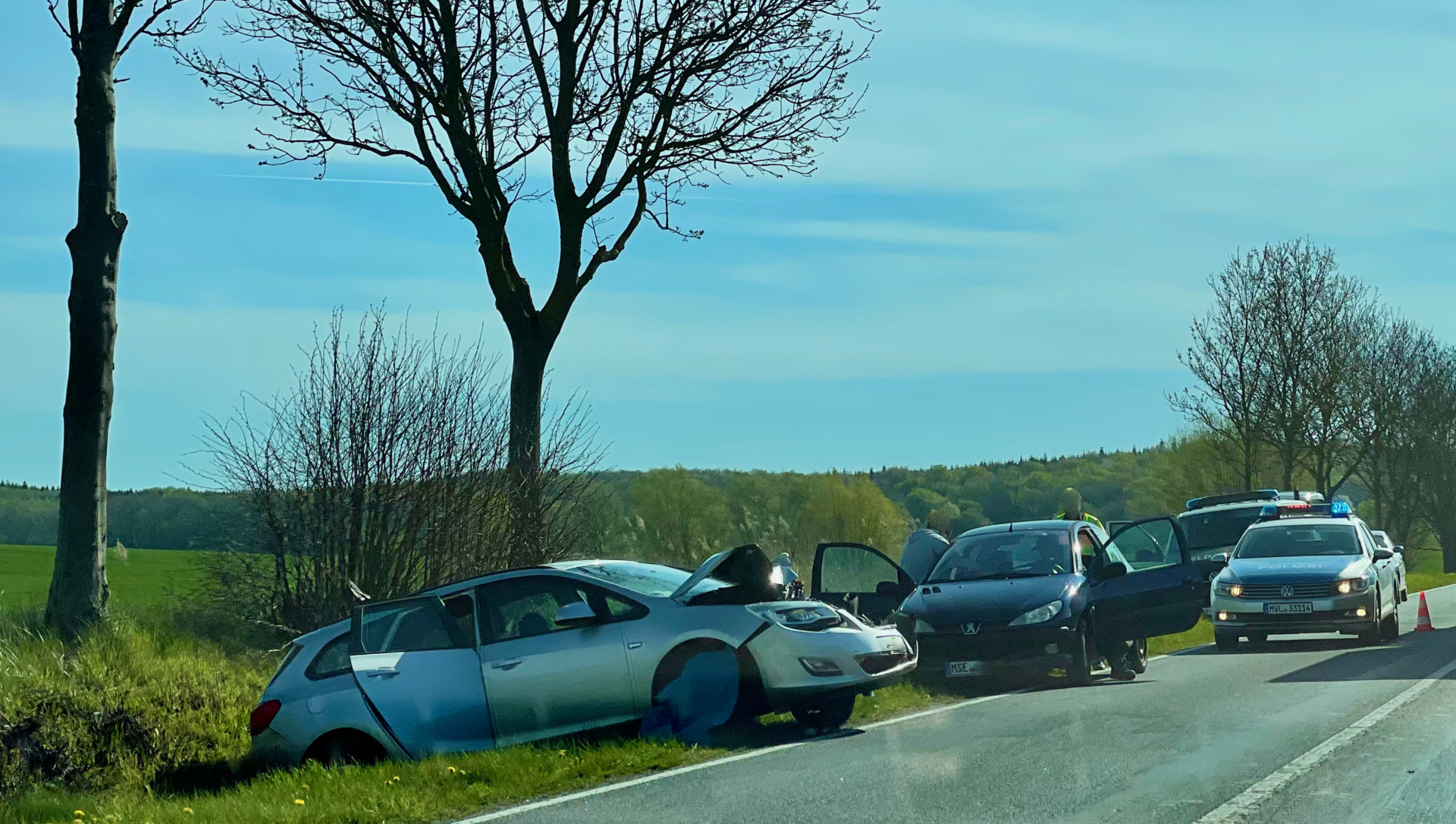 Das Bundeswehrfahrzeug kam durch den Aufprall von der Straße ab und im Straßengraben zum Stehen. Dessen35-jährige Fahrer und sein 31-jähriger Beifahrer wurden dabei leicht verletzt.