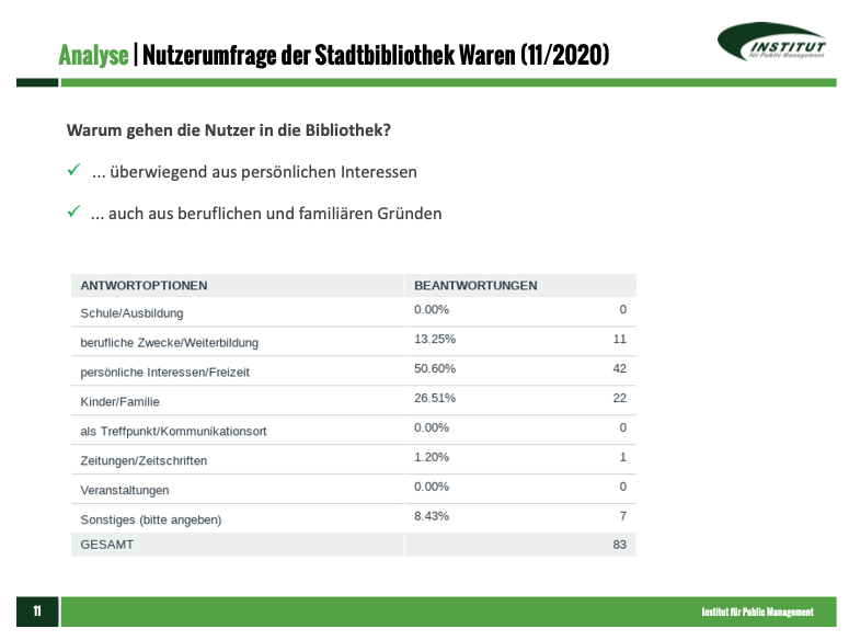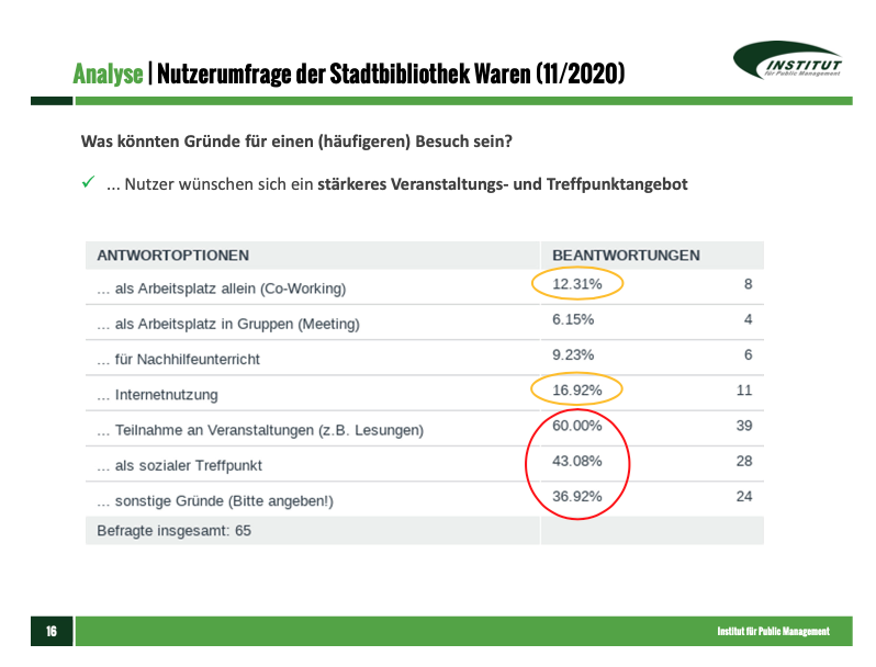 Und was wünschen sich die Nutzer? Ganz klar: Sie möchten eine Bibliothek, die mehr ist, als ein Ort, an dem man sich Bücher ausleihen kann. Sie wünschen sich Veranstaltungen, einen sozialen Treffpunkt und natürlich Internet.