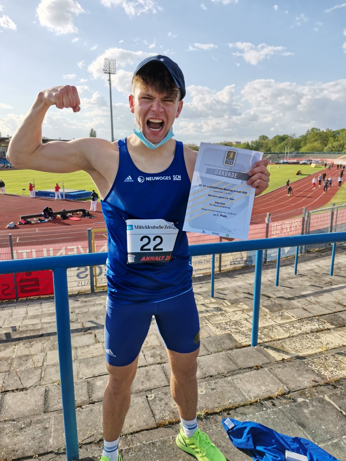 Wahnsinns-Leistung: Der Warener Elija Ziem hat bei einem internationalen Leichtathletik Meeting in Dessau in einem hoch spannenden Rennen über 800 Meter Gold in neuer Bestzeit geholt. In Dessau trifft sich derzeit wenige Wochen vor den Olympischen Spielen die Leichtathletik-Elite, und Elija ist dabei. Der 17-Jährige hat in der Vergangenheit schon zahlreiche Titel geholt und sich auch durch Verletzungen nicht von seinem Kurs abbringen lassen. Elija lebt in Waren, besucht aber die Sportschule in Neubrandenburg und startet für den SC Neubrandenburg.