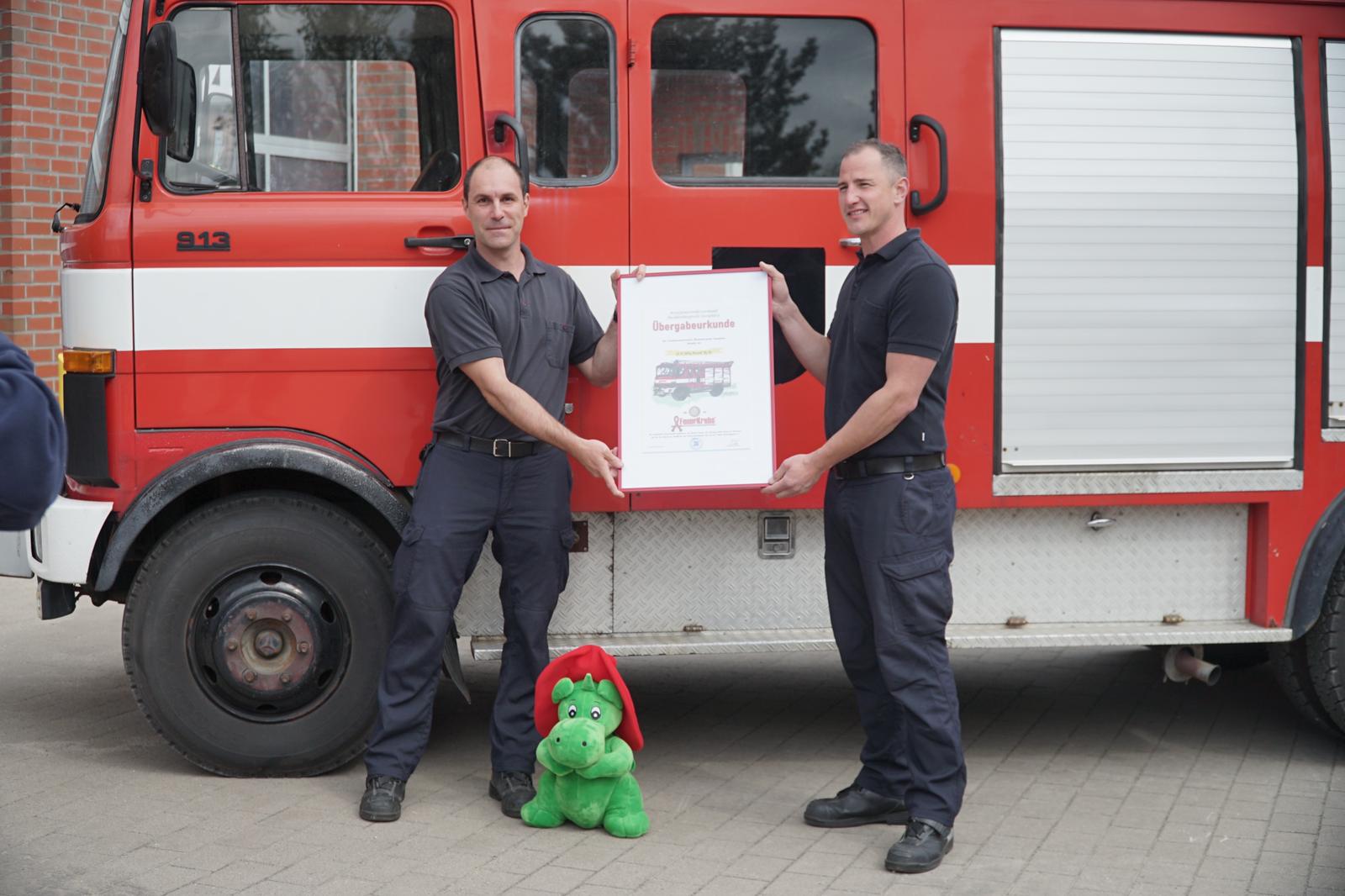 Feuerwehr und Krebs – leider ein Thema, das immer mehr an Bedeutung gewinnt. Allein in der Berufsfeuerwehr Neubrandenburg sind seit dem Jahr 2003 neun Kameraden an verschiedenen Krebsarten gestorben, vier Kameraden sind nach überstandener Krankheit zurück im Dienst bzw. mittlerweile im Ruhestand. „Fast jedes Jahr müssen wir erfahren, dass ein weiterer Kamerad an Krebs erkrankt ist“, berichten Marco Thamke und Roberto Thude von der Neubrandenburger Berufsfeuerwehr. Die beiden Männer wollen auf dieses wichtige Thema aufmerksam machen und im kommenden Jahr auf große Spendentour gehen. Mit einer alten, ausgemusterten Feuerwehr, die ihnen am Wochenende vom Kreisfeuerwehrverband Mecklenburgische Seenplatte übergeben wurde, wollen sie durch zehn Anrainerstaaten der Ostsee und Norwegen fahren. Der Erlös ihrer Tour kommt der Organisation „FeuerKrebs“ in Hamburg zugute.