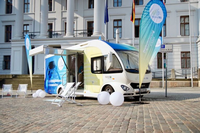 Das DigiMobil Mecklenburg-Vorpommern wird morgen, 2. Juni, in der Zeit von 10.30 bis ca. 15 Uhr an der Scheune Bollewick von Ort sein. Im DigiMobil können sich die Besucher mit Hilfe von Augmented und Virtual Reality über die Digitale Agenda MV sowie neue technische Entwicklungen informieren. Außerdem gibt es Informationen über den Breitbandausbau, den digitalen Innovationsraum MV und über technische Möglichkeiten in den eigenen vier Wänden.