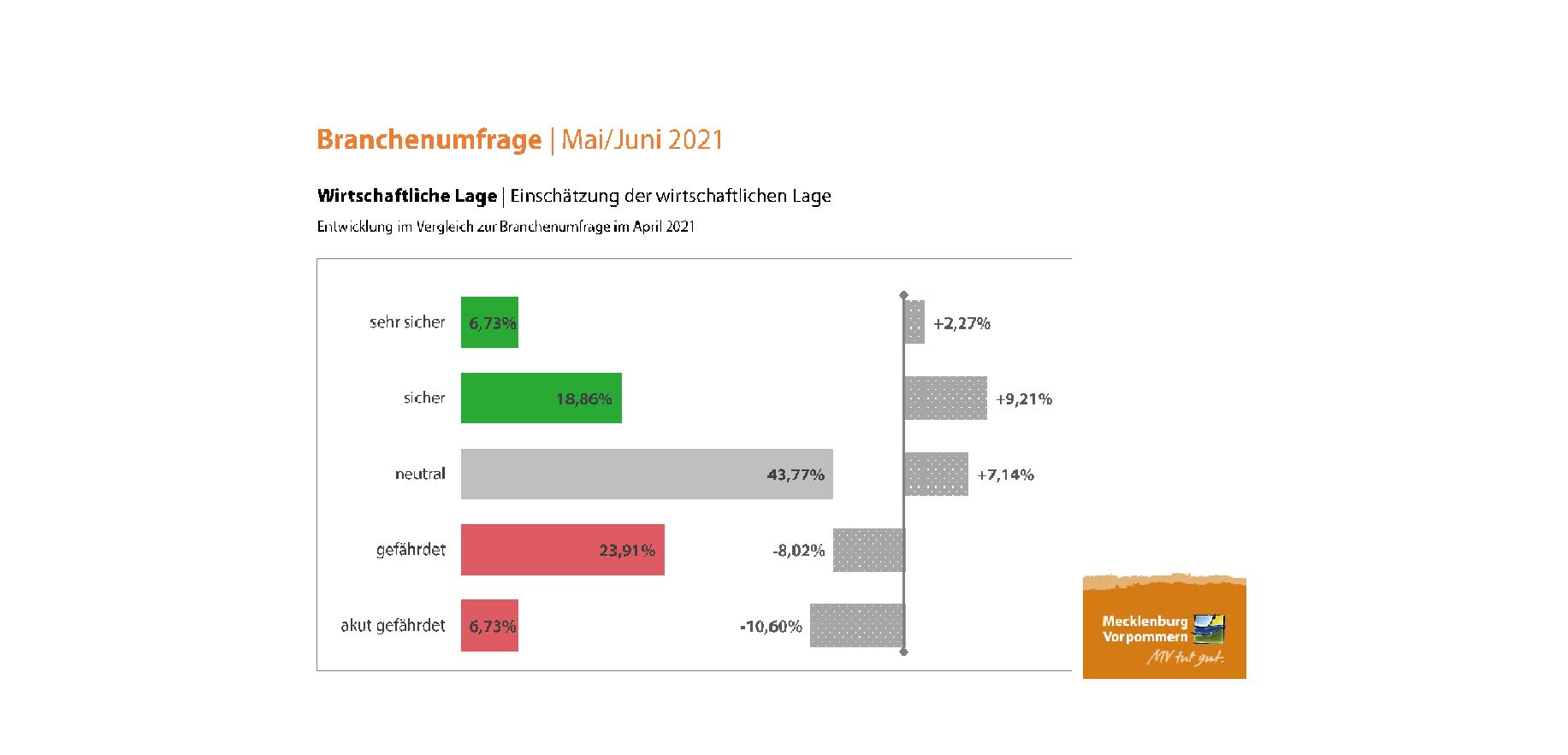 Das im Dezember 2020 eingeführte Siegel „Mehr Sicherheit im Urlaubsland MV“ bietet immer mehr Unternehmen und damit potenziell auch den Gästen Orientierung für einen sicheren Urlaub. Laut Umfrage führen es derzeit bereits 29 Prozent der Betriebe; weitere 16 Prozent wollen es beantragen (vgl. mv-gegen-corona.de).
