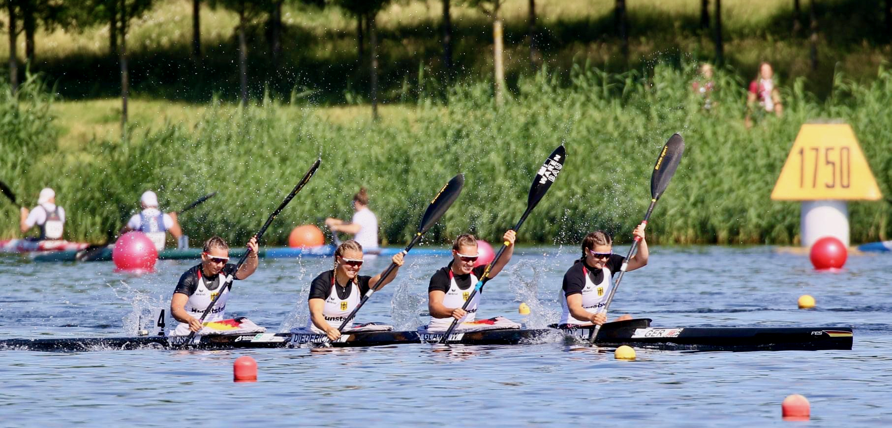 Im Vorlauf konnten sich die vier Kanutinnen souverän für den Endlauf qualifizieren. Nach den Vorlaufzeiten zu urteilen, war im Endlauf ein Platz zwischen 1 und 5 möglich. Der Start verlief sehr gut und die deutschen Mädchen konnten sich mit Ungarn, Weißrussland und Polen vom Feld absetzten. 150 Meter vor dem Ziel lagen sie noch auf Platz 4.