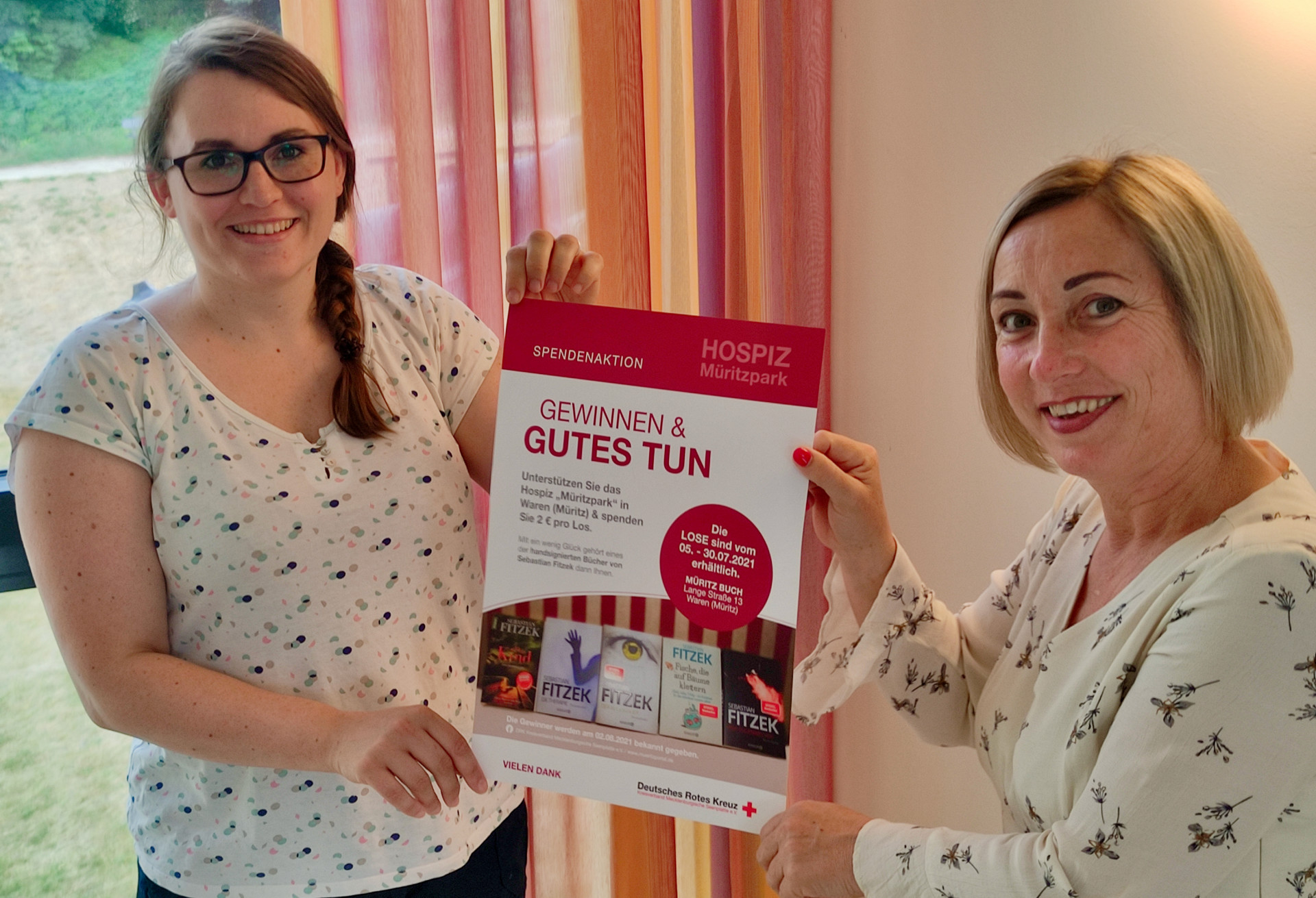 Seit fast zwei Jahren gibt es das DRK-Hospiz „Müritzpark“ in der Thomas-Mann-Straße mit seinen 10 Plätzen. Seither konnten die Mitarbeiter vielen unheilbar kranken Frauen und Männern angenehme Tage bereiten. Doch so ein Hospiz wird nicht zu 100 Prozent finanziert, fünf Prozent der Kosten müssen über Spenden eingeworben werden. Gerade in der Corona-Zeit nicht leicht, weil viele Veranstaltungen, die zugunsten solcher Häuser organisiert wurden, ausfallen mussten. Doch die Hospiz-Mitarbeiter lassen sich einiges einfallen, um das Geld zusammenzubekommen. Nachdem sie im vergangenen Jahr ein signiertes Klavier-Notenbuch von Rammstein versteigerten, haben sie nun vom Bestseller-Autoren Sebastian Fitzek fünf handsignierte Bücher bekommen. Und die werden jetzt verlost.