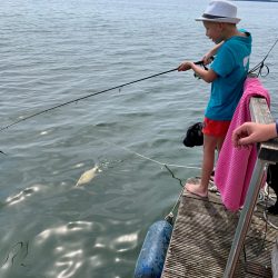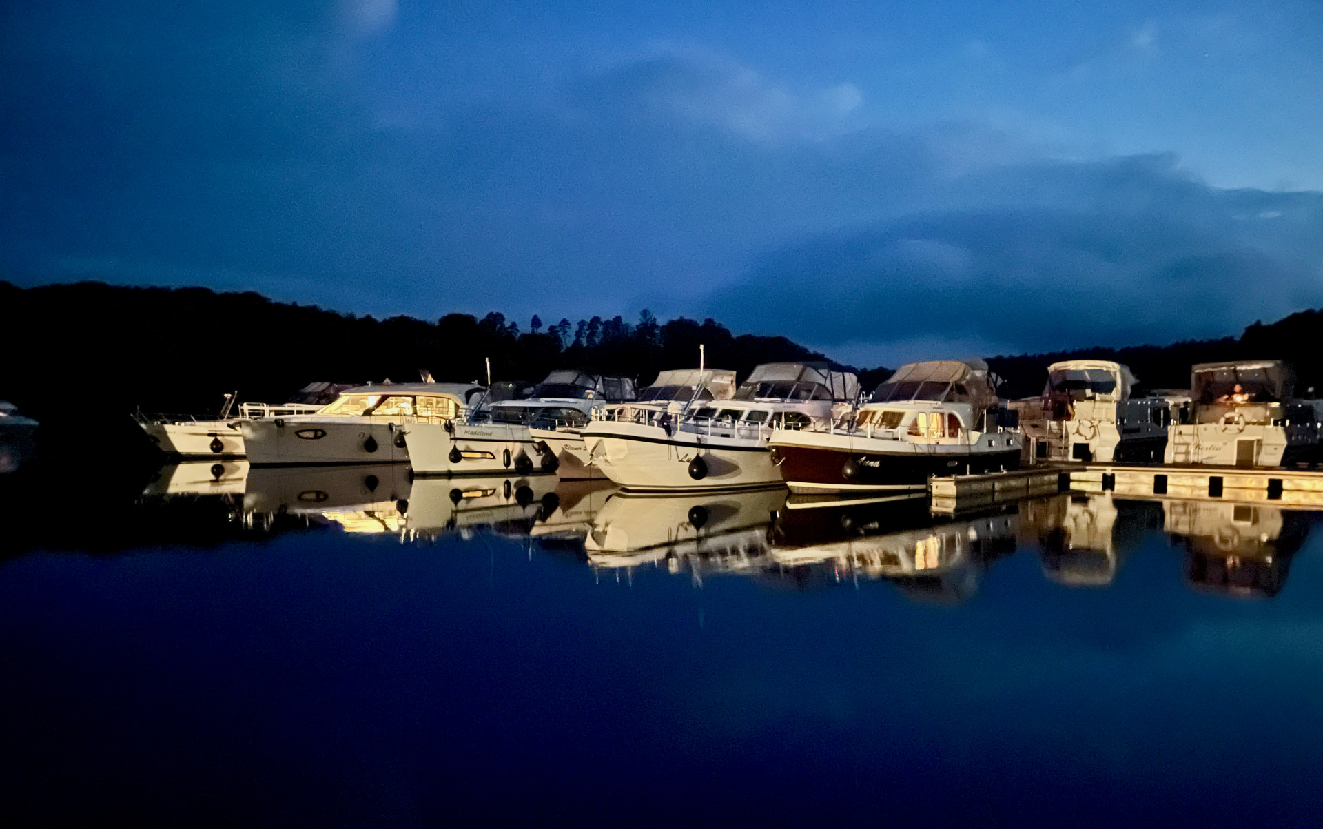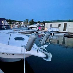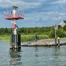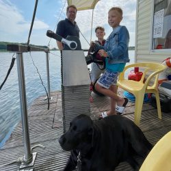 Dort, in unmittelbarer Nähe des Kanals ankern wir. So langsam beginnt die Entspannung. Einfach mal nichts tun, nur baden, angeln, abhängen. Die Stunden vergehen wie im Flug und dann die Frage – wo wollen wir übernachten? Auf dem See? Lieber nicht, das ist uns nach den Erfahrungen des ersten Tages doch zu riskant. Außerdem spinnt der Generator, schon beim Einschalten des Wasserkochers fliegt die Sicherung heraus. Also schnell mal telefonisch – ja, der Empfang ist auf dem See bestens – in der Marina Eldenburg angefragt.