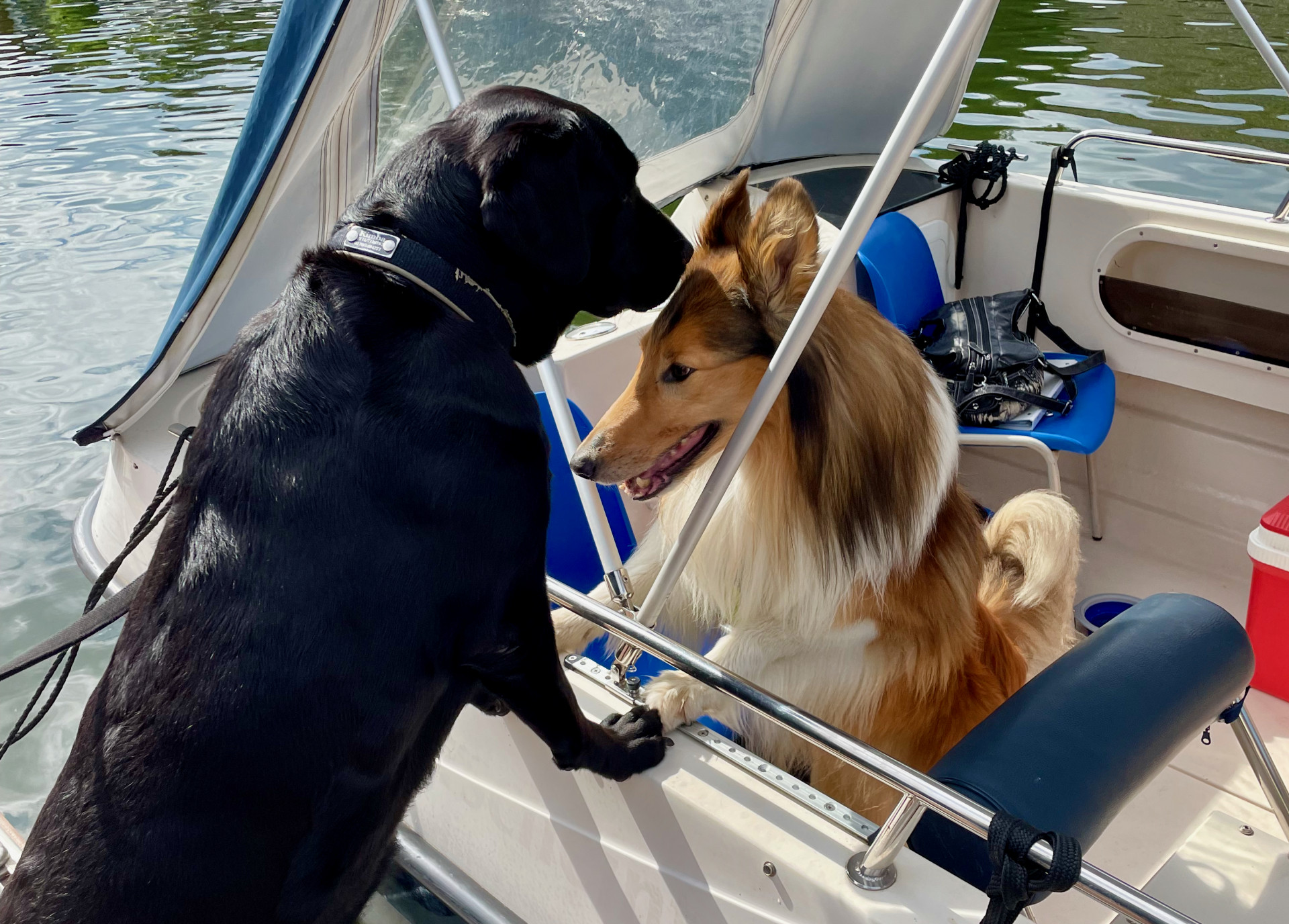 Freundliche Bootsfahrer grüßen sich