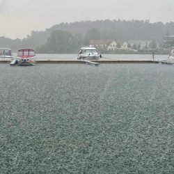 Der neue Tag beginnt mit einem kräftigen Gewitterguss. Macht aber nichts, wir wollen ja ohnehin erst mal frühstücken. Im „Oh Julia“ setzt man auf Büfett. Ein sehr reichhaltiges. Nur das Anstehen am Kaffee-Automaten ist etwas nervig. Dafür steht sehr freundliches Personal mit Rat und Tat zur Seite, wer möchte, kann sich frische Spiegeleier oder Omelett in der offenen Küche zubereiten lassen. Der angrenzende Pool weckt das Interesse der Kinder. Aber warum in einen Pool, wenn die Müritz nur ein paar Schritte entfernt ist? Das Argument zieht nicht, die Kids wollen unbedingt in den Pool. Auch das ist kein Problem. Für 4,50 Euro dürfen sie eine Stunde plantschen und sind begeistert. Jetzt zieht’s uns aber doch wieder zurück aufs Wasser, der Regen hat sich verabschiedet, der Himmel reißt auf.