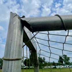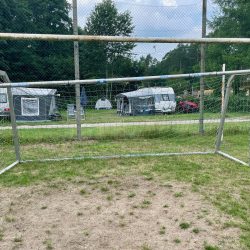 Zurück auf dem Campingplatz „Maribell“ wollen die Jungs die Gelegenheit nutzen, und noch ein bisschen kicken. Es gibt ja schließlich einen Fußballplatz mit Gestellen, die zumindest von weitem aussehen, wie Tore. Als wir den kleinen Fußballern dann zuschauen wollen, stehen uns die Nackenhaare zu Berge. Die großen Tore haben schon lange ihren Geist aufgegeben, die kleinen, die man einfach dazwischen gestellt hat, sind eine echte Gefahr für Leib und Leben. Bei einem Tor hängt der obere Holm schon tief runter, beim anderen ist er ebenfalls gebrochen, scharfkantige Teile ragen heraus. Wir beenden das Fußballspiel zur Enttäuschung der Kinder.