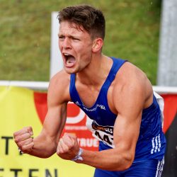 Die Bedingungen in Rostock waren alles andere als ideal, nicht nur der Dauerregen machte es den Athleten schwer. Der DLV hatte Zuschauer bei den Wettkämpfen ausgeschlossen, was für den Familien-Menschen Elija schon ein Problem war. Papa Patrick schaffte es gestern dennoch ins Stadion, konnte das furiose Rennen seines Sohnes live erleben und ihn anschließend gemeinsam mit Trainer Thomas Peucker in die Arme nehmen. Für Papa Patrick ein tolles Geschenk zum 21. Hochzeitstag.