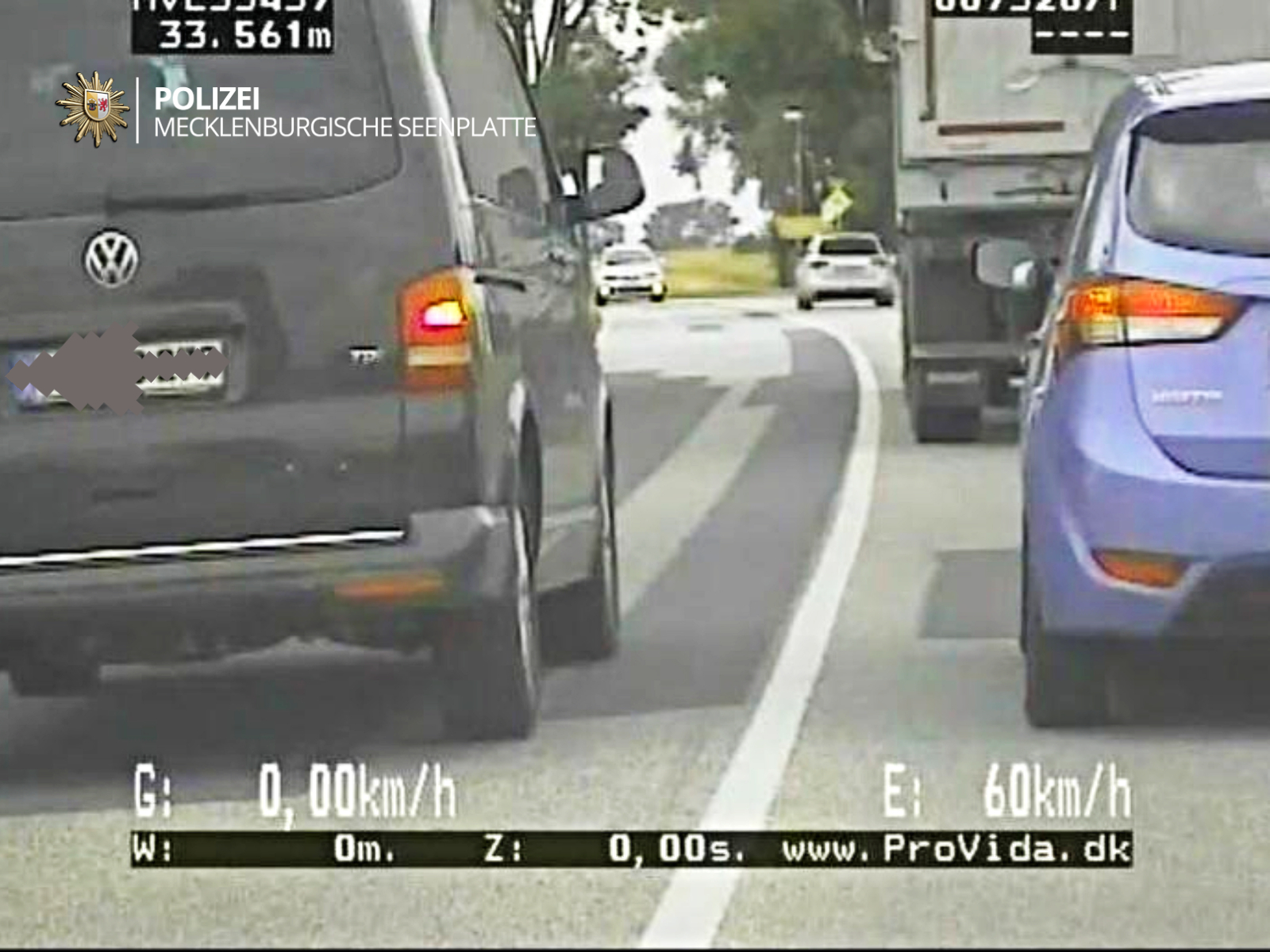 Auf der B 104 zwischen Rosenow und Ritzerow ahndeten die Beamten einen Überholverstoß nebst einer Geschwindigkeitsüberschreitung. Hier überholte ein 41-Jähriger eine Fahrzeugschlange mit einem VW Transporter, obwohl er nicht übersehen konnte, dass eine Behinderung oder Gefährdung des Gegenverkehrs während des gesamten Überholvorgangs ausgeschlossen war. Der Fahrzeugführer missachtete das Überholverbotszeichen (Z 295 – durchgezogene Fahrstreifenbegrenzung) und gefährdete dadurch einerseits Verkehrsteilnehmer im Gegenverkehr, so dass diese stark abbremsen mussten.